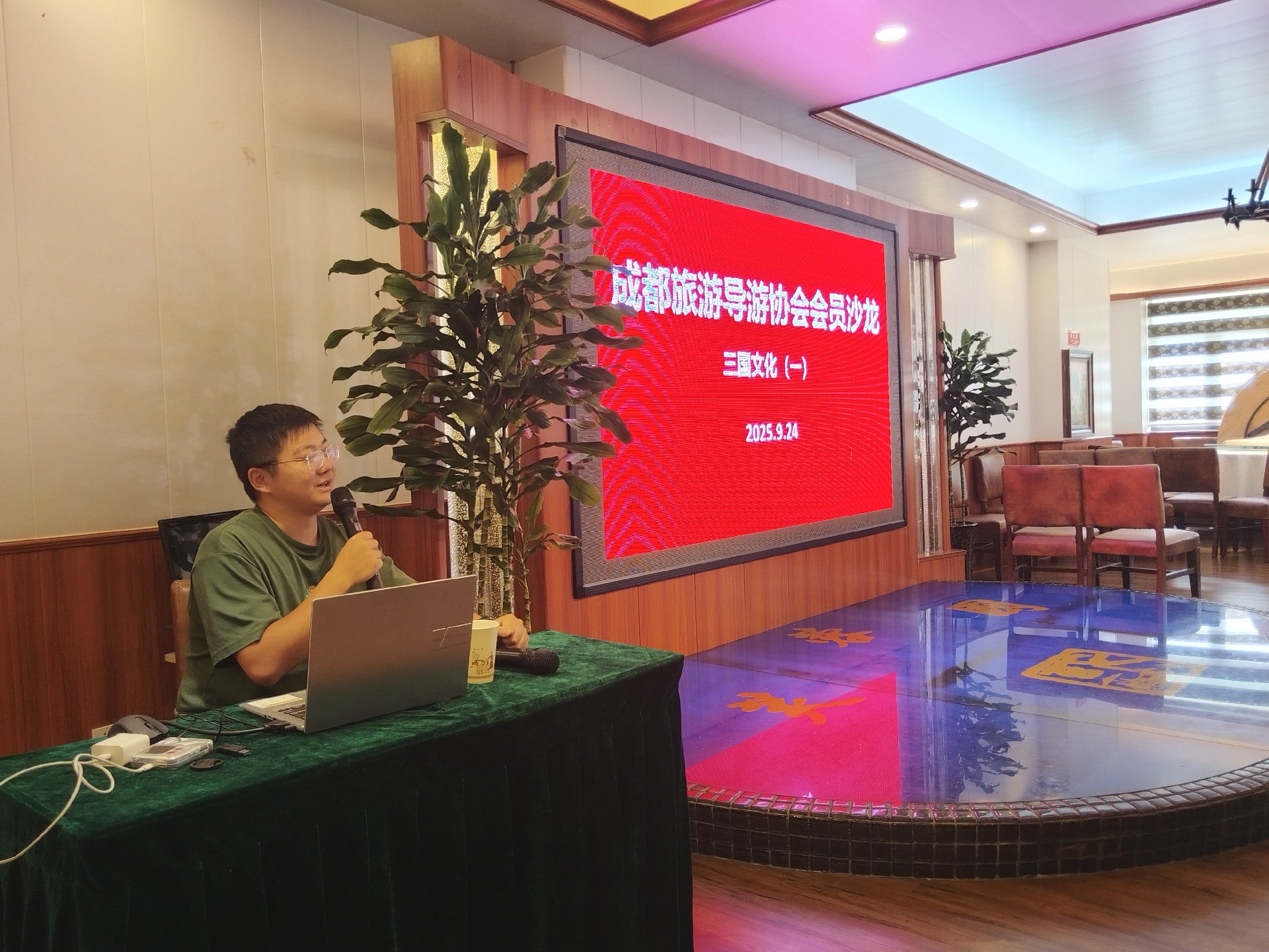 为深化会员导游对本地核心历史文化的理解,提升专业讲解内涵与服务水平,在主管部门指导下,成都旅游导游协会于9月24日成功举办了以“对话三国,深析蜀汉”为主题的三国文化会员沙龙。活动特邀成都旅游导游协会名师名导工作室成员、原成都武侯祠博物馆一级讲解员、资深三国文化研究者肖亦翀老师担任主讲嘉宾,吸引了协会百余名会员积极参与,现场学术氛围浓厚,交流互动热烈。